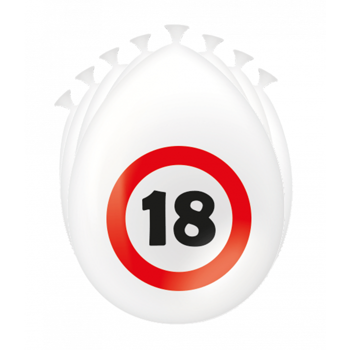 18 Jaar Verkeersbord Ballonnen - 8 stuks. Inhoud: 8 latex ballonnen. Bijvoorbeeld te gebruiken tijdens de volgende feestgelegenheid/feestgelegenheden: verjaardag, tienerfeestje, jubileum. Elke ballon is 12 inch/30 cm. Het artikel is gemaakt van latex.