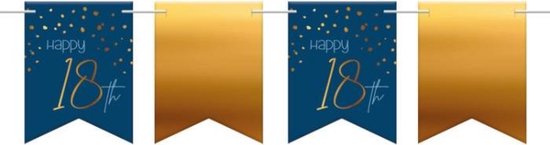 Vlaggenlijn Elegant True Blue 18 Jaar - 6 meter - Vlaggenlijn Elegant True Blue 18 Jaar - 6 meter. Inhoud: 1 vlaggenlijn van 6 meter. Kleur: Blauw. Bijvoorbeeld te gebruiken tijdens de volgende feestgelegenheid/feestgelegenheden: Verjaardag, Jubileum. De vlaggenlijn is 6 meter lang met 10 vlaggetjes van 23 cm hoog. Het artikel is gemaakt van papier.