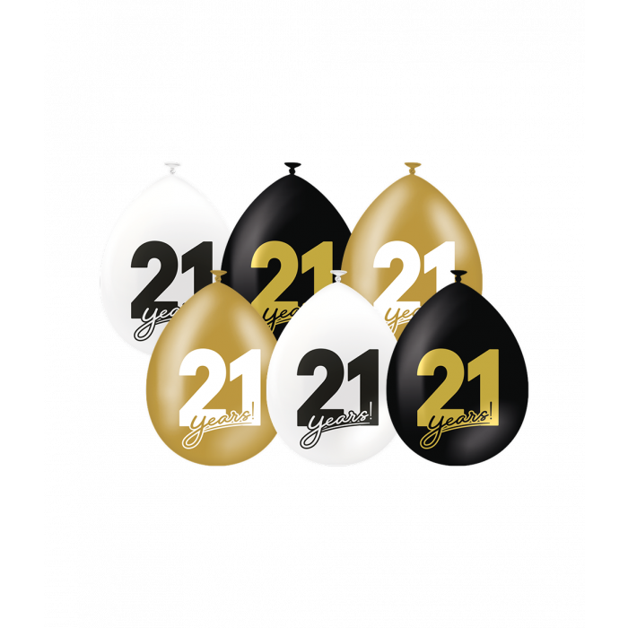 Vier jouw 21e verjaardag met deze feestelijke 21 jaar ballonnen. De set bestaat uit 6 ballonnen met een formaat van 30 cm, ideaal om jouw feestlocatie direct om te toveren tot een vrolijke en feestelijke ruimte. De ballonnen zijn bedrukt met het cijfer 21 en perfect om te gebruiken als losse decoratie, in een ballonboeket of gecombineerd met andere 21 jaar versiering. Zo maak je jouw verjaardag helemaal compleet.