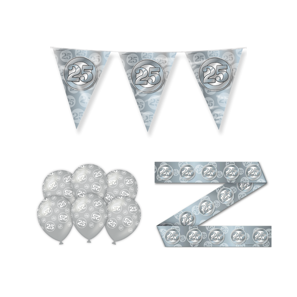 Bestel nu het 25 Jaar Getrouwd Versiering Pakket Zilver en maak van dit jubileum een onvergetelijke dag vol liefde en herinneringen!