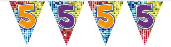 Vlaggenlijn Birthday Blocks 5 Jaar - 6 meter - Iemand 5 jaar geworden? Met deze slingers zet u de toon voor het feestje. Deze vlaggenlijn is maar liefst 6 meter lang en de vrolijke kleuren maken van deze slinger een feestelijke decoratie. Geschikt voor de verjaardag van zowel jongens als meisjes.
