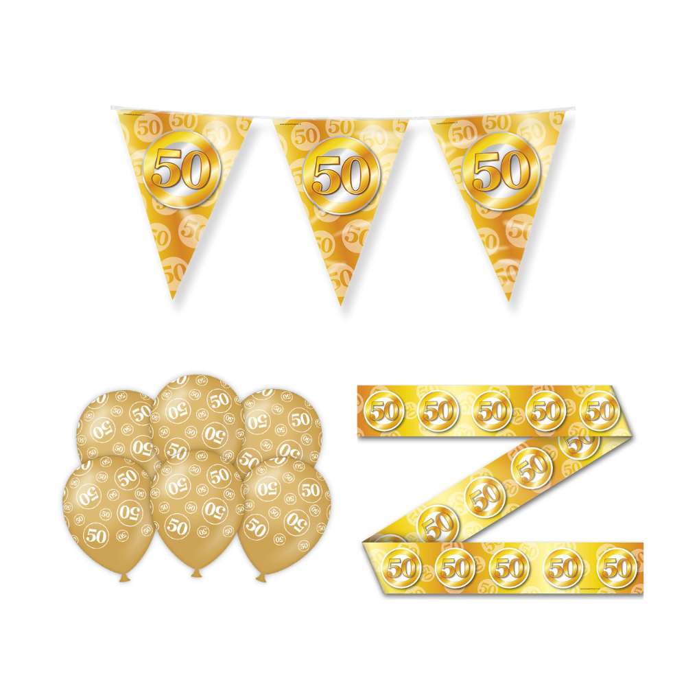 Bestel nu het 50 Jaar Getrouwd Versiering Pakket – Goud en geef dit onvergetelijke moment de feestelijke aankleding die het verdient!