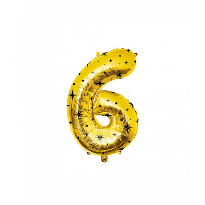 Vier een 6e verjaardag feestelijk met deze grote cijferballon in zwart met gouden sterren. De ballon heeft een hoogte van 86 cm en vormt een echte blikvanger op elk kinderfeest. Het opvallende design maakt hem perfect om los neer te zetten of te combineren met andere cijferballonnen.
