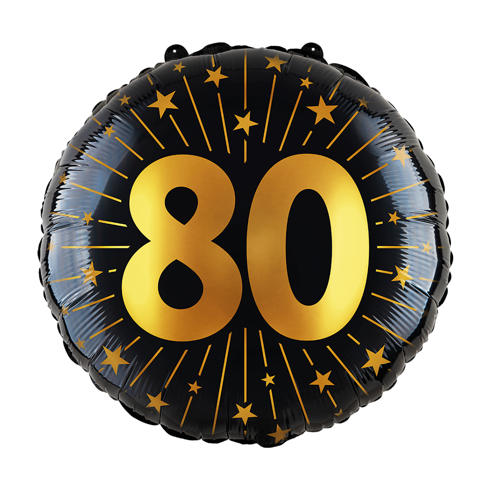 De folieballon is voorzien van het cijfer 80 in een zwart-goud ontwerp en kan eenvoudig worden gevuld met helium of lucht. Hang hem los in de ruimte, gebruik hem als tafeldecoratie of combineer meerdere ballonnen voor een feestelijk geheel.