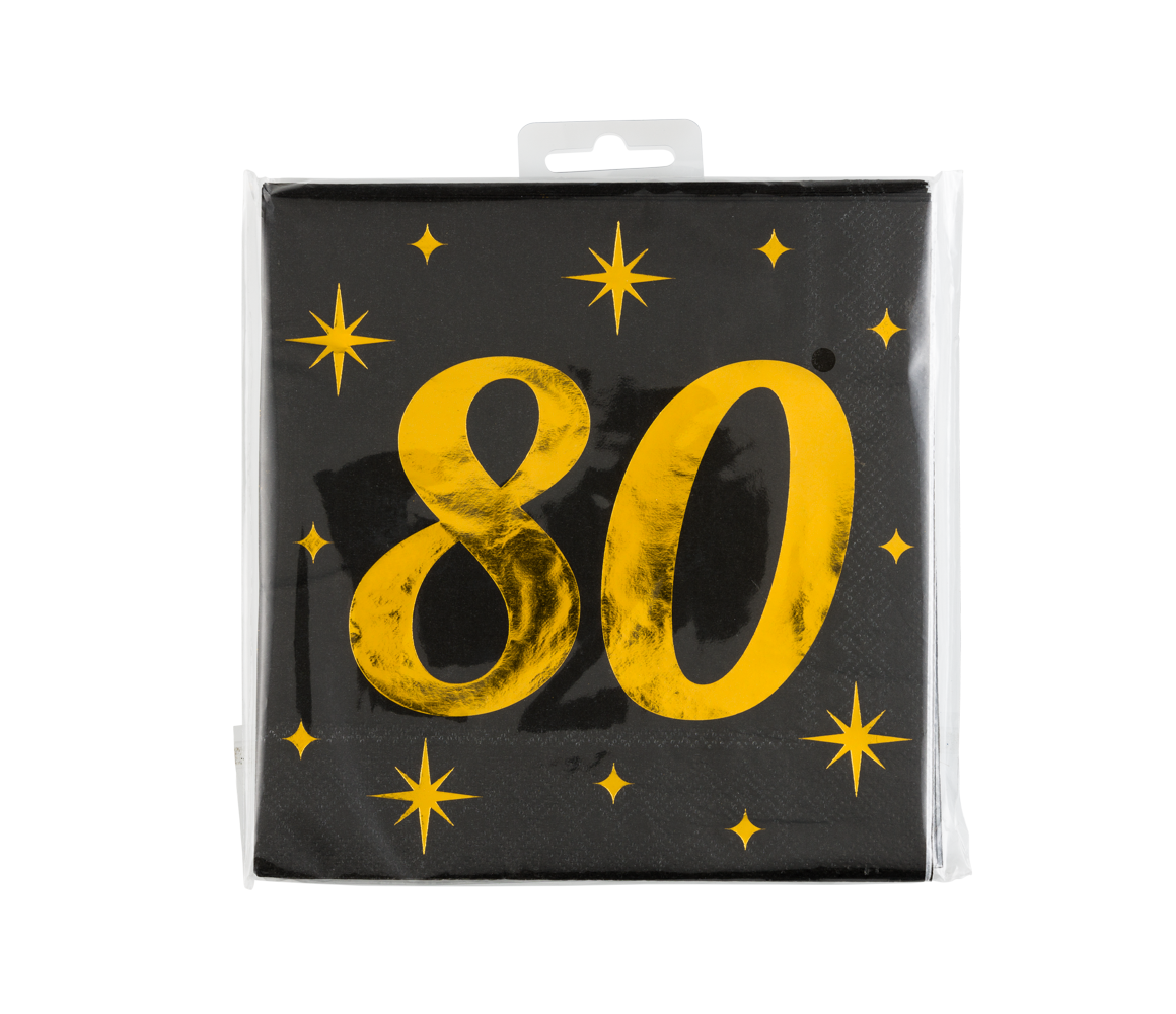 80 Jaar Servetten Zwart Goud 19cm 16st