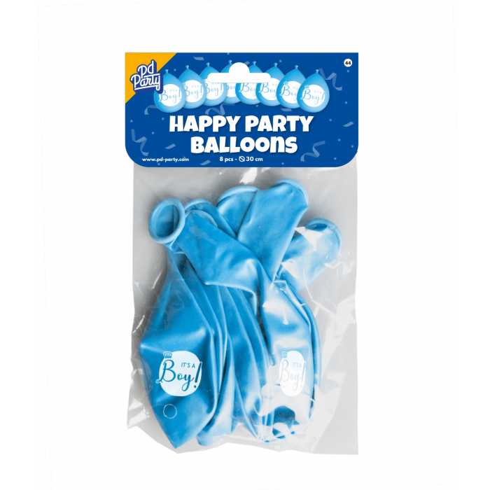 Vier de komst van een jongen met deze feestelijke It’s a Boy-ballonnen. De lichtblauwe ballonnen met stijlvolle witte opdruk zorgen direct voor een vrolijke sfeer bij een babyshower, kraamfeest of thuiskomst van de baby. De ballonnen hebben een doorsnede van 30 cm en kunnen worden gevuld met lucht of helium. In elke verpakking zitten 8 ballonnen, perfect om de ruimte om te toveren tot een feestelijke babywelkom!