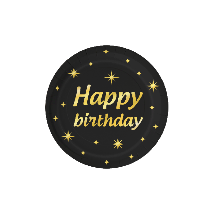 Geef je verjaardag een luxe uitstraling met deze stijlvolle “Happy Birthday” bordjes. De zwarte achtergrond met gouden sterren en elegante letters zorgt voor een feestelijke, maar chique sfeer. Perfect voor verjaardagen, jubilea of andere bijzondere gelegenheden.