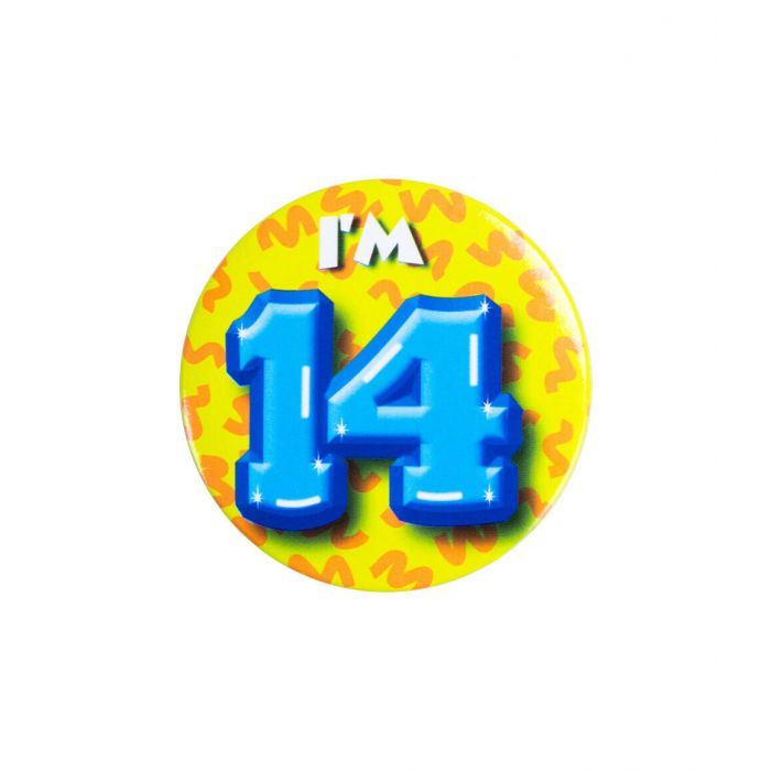 Feestelijke kleine buttons met een diameter van 5,5 cm. Nu in alle leeftijden maar ook met leuke en grappige teksten te verkrijgen zoals button I'm 14. Geschikt voor meerdere gelegenheden om iets te vieren zoals een verjaardag, iemand die geslaagd is en vrijgezellenfeesten.