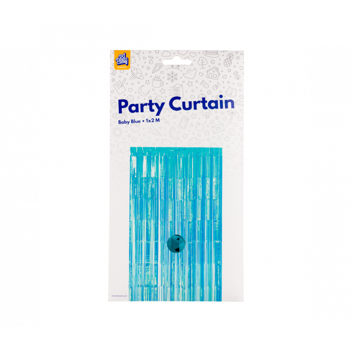 Breng een frisse en vrolijke sfeer in je feestdecoratie met dit Party Curtain – Baby Blue. Het glanzende lichtblauwe folie gordijn zorgt direct voor een feestelijke uitstraling en is ideaal als backdrop voor foto’s, achter de feesttafel of als decoratie in een deuropening.