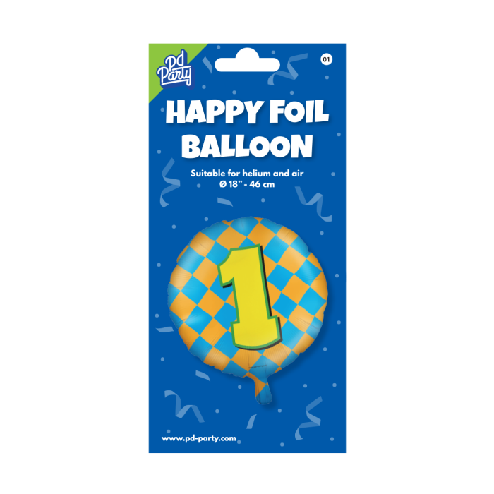 Vier de allereerste verjaardag in stijl met deze kleurrijke folieballon van 45 cm. De ballon heeft een vrolijk blauw-geel ruitpatroon met het cijfer 1 in het midden en zorgt direct voor een feestelijke sfeer. Geschikt voor zowel helium als lucht, ideaal om te laten zweven of op te hangen als decoratie. Perfect voor een kinderfeestje of als blikvanger bij een verjaardagsshoot.