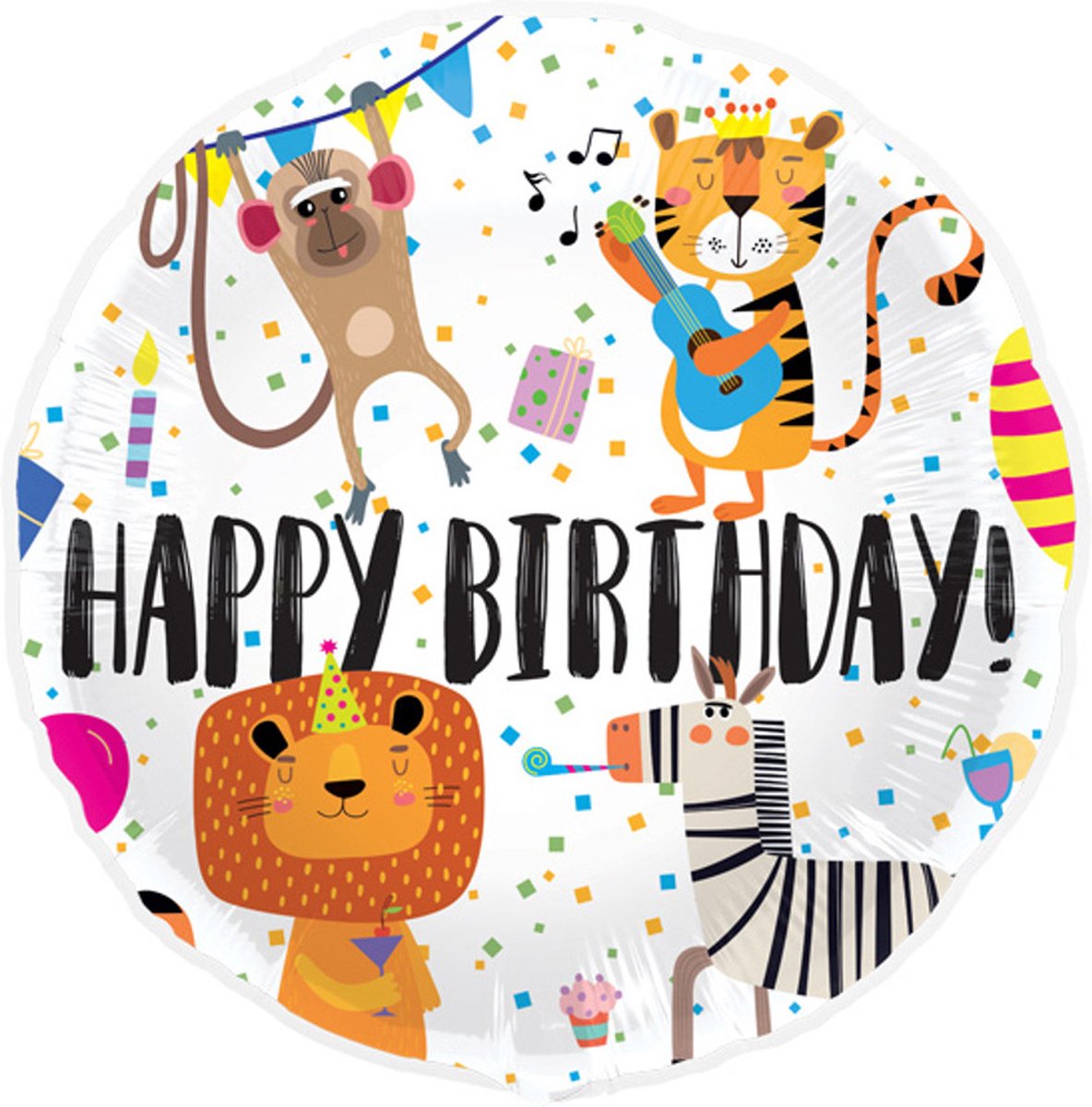Deze vrolijke folieballon vol dieren is perfect voor een kinderfeestje. Combineer de folieballon met gekleurde Latexballonnen voor een complete partylook. De ballon is verpakt per stuk met een doorsnee van 45cm. Wil je de ballon thuis of op locatie zelf vullen met helium? Dat kan snel en eenvoudig met onze heliumtankjes. Bevestig de ballon aan een lint en gewichtje zodat de ballon mooi in het zicht komt te staan.