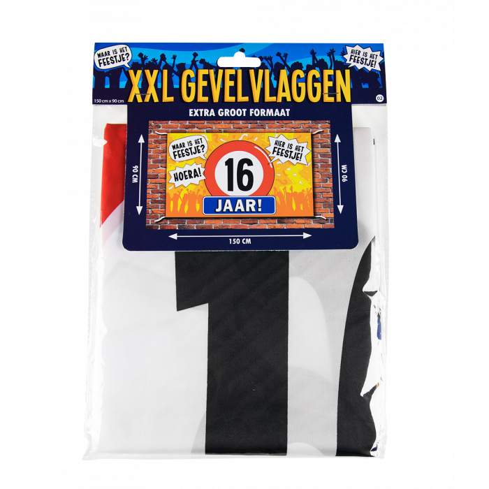 Leuke XXL Gevelvlag met de tekst "Hoera 16 Jaar"