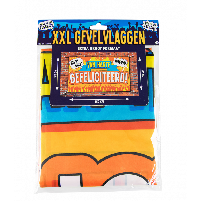 Leuke XXL Gevelvlag met de tekst "Hiep Hiep Hoera van harte Gefeliciteerd