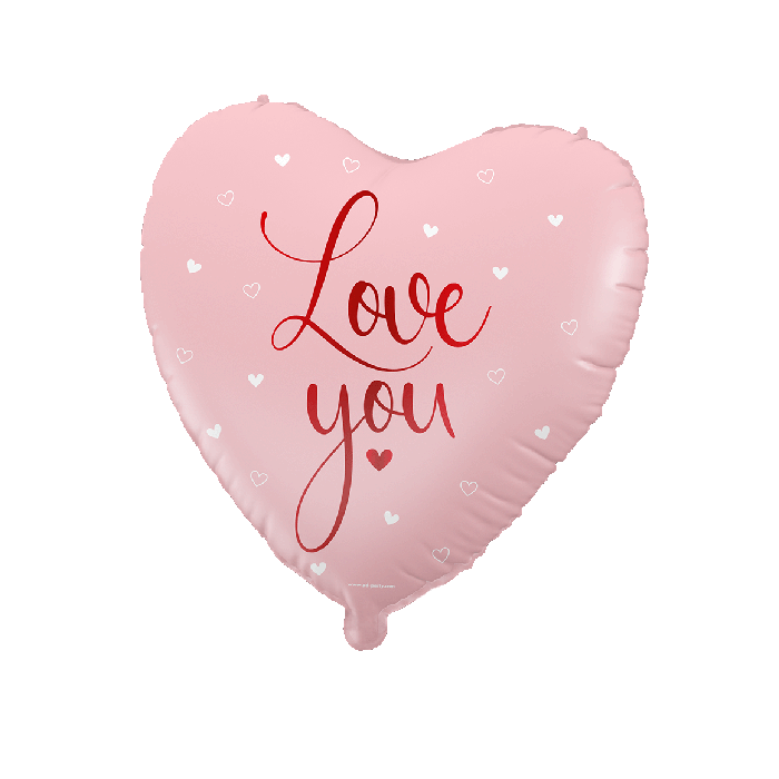 Verras je geliefde met deze prachtige roze hartvormige folieballon met de tekst Love You. De ballon is bedrukt met rode letters en kleine witte hartjes, waardoor hij een romantische en stijlvolle uitstraling heeft.