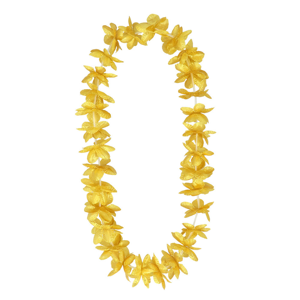 Deze mooie gouden Hawaiikrans voegt een vleugje luxe toe aan een outfit voor elke gelegenheid, van Hawaiiaanse feesten tot zomerse festivals en oud & nieuw feesten. Met zijn glanzende gouden afwerking en klassieke ontwerp is deze bloemenkrans een eyecatcher die de aandacht trekt en elke zomerse outfit compleet maakt.