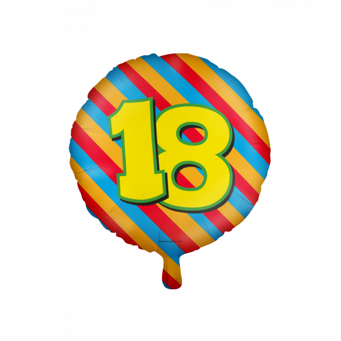 De Happy foil balloons 18 zijn een leuke toevoeging voor als er iemand 18 wordt en door de gebruikte kleuren valt de folie ballon extra op. De folie ballon kan worden gevuld met helium of met lucht, hiervoor wordt standaard een rietje meegeleverd. De ballonnen hebben een diameter van ongeveer 45 centimeter, worden plat geleverd.