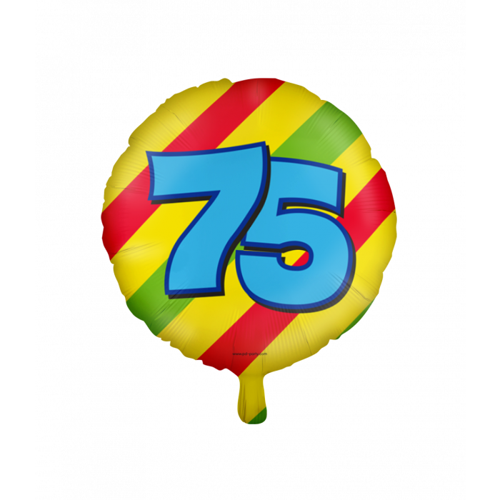 Vier een 75e verjaardag feestelijk met deze Helium Ballon 75 Jaar Party van 45 cm. De ballon is bedrukt met het cijfer 75 en een vrolijk party design, waardoor hij meteen de aandacht trekt en perfect past bij een verjaardag of jubileum.