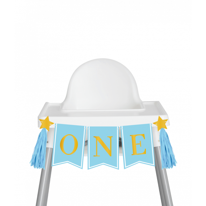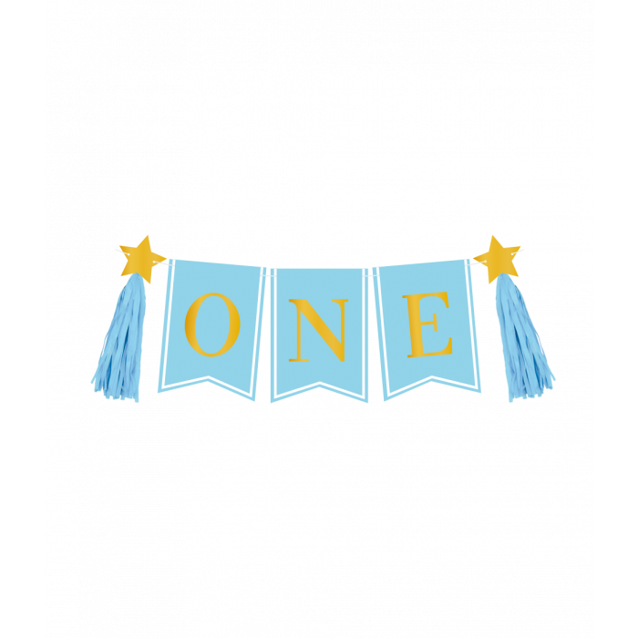 Maak de eerste verjaardag van je zoontje extra feestelijk met de High Chair Banner First Birthday Boy. Deze schattige vlaggenlijn is speciaal ontworpen om de kinderstoel te versieren en creëert een vrolijke en feestelijke sfeer tijdens het taartmoment of de fotoshoot. De lichtblauwe vlaggetjes met gouden letters spellen het woord "ONE" en zorgen voor een prachtige blikvanger. Ideaal als decoratie bij het verjaardagsfeestje en een mooie toevoeging aan de eerste verjaardagsfoto’s.