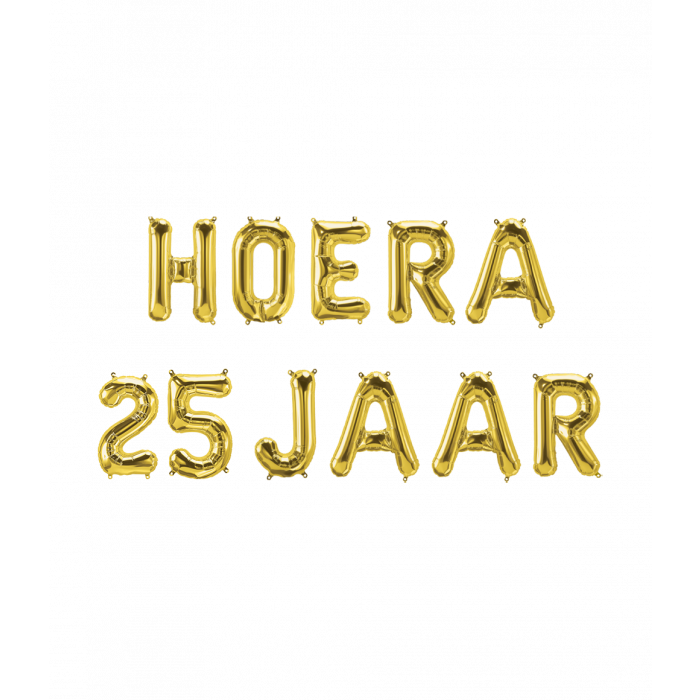 Vier een 25e verjaardag op een feestelijke manier met deze prachtige folieballonnen set in goud. De set bestaat uit ballonnen met de tekst Hoera 25 jaar en heeft een afmeting van 41 cm. Dankzij de glanzende gouden folie zijn de ballonnen een echte eyecatcher op ieder feestje. Hang ze eenvoudig op aan de muur, achter de feesttafel of gebruik ze als decoratie voor een fotoshoot. Met deze folieballonnen maak je jouw 25 jaar feest onvergetelijk.
