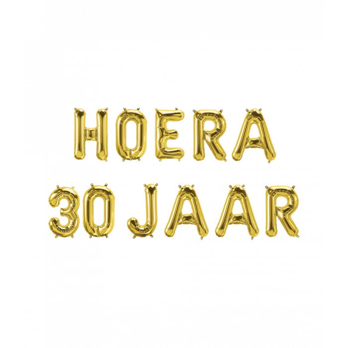 Vier een 30e verjaardag op een feestelijke manier met deze prachtige folieballonnen set in goud. De set bestaat uit ballonnen met de tekst Hoera 30 jaar en heeft een afmeting van 41 cm. Dankzij de glanzende gouden folie zijn de ballonnen een echte eyecatcher op ieder feestje. Hang ze eenvoudig op aan de muur, achter de feesttafel of gebruik ze als decoratie voor een fotoshoot. Met deze folieballonnen maak je jouw 30 jaar feest onvergetelijk.
