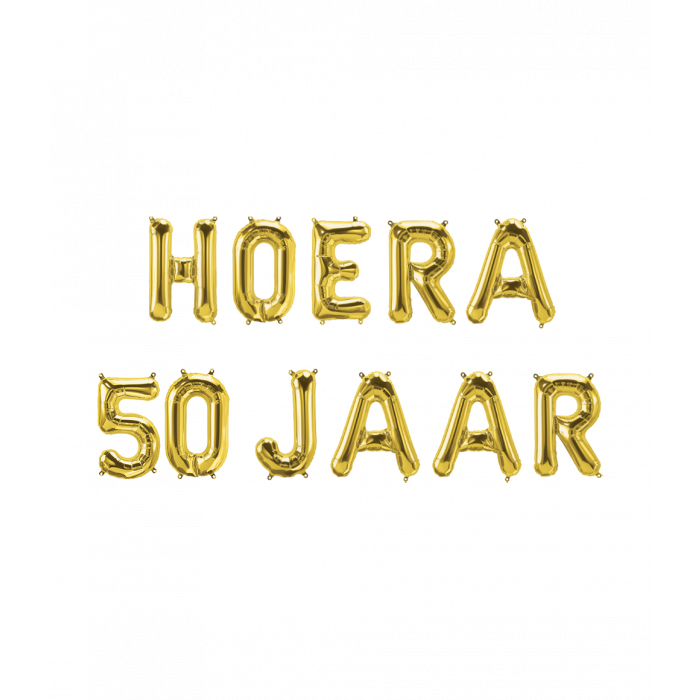 Vier een 50e verjaardag op een feestelijke manier met deze prachtige folieballonnen set in goud. De set bestaat uit ballonnen met de tekst Hoera 50 jaar en heeft een afmeting van 41 cm. Dankzij de glanzende gouden folie zijn de ballonnen een echte eyecatcher op ieder feestje. Hang ze eenvoudig op aan de muur, achter de feesttafel of gebruik ze als decoratie voor een fotoshoot. Met deze folieballonnen maak je jouw 50 jaar feest onvergetelijk.