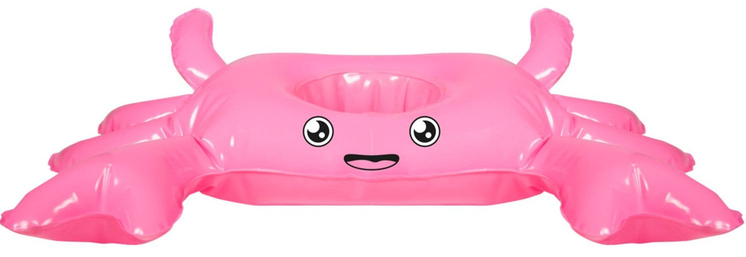 Opblaasbare drankenhouder krab Een opblaasbare drankenhouder, handig voor op bijvoorbeeld het strand. Met de roze kleur en de vorm van een krab is deze drankenhouder een vrolijk alternatief voor een standaard drankenhouder. Laat het tropische feestje maar beginnen!
