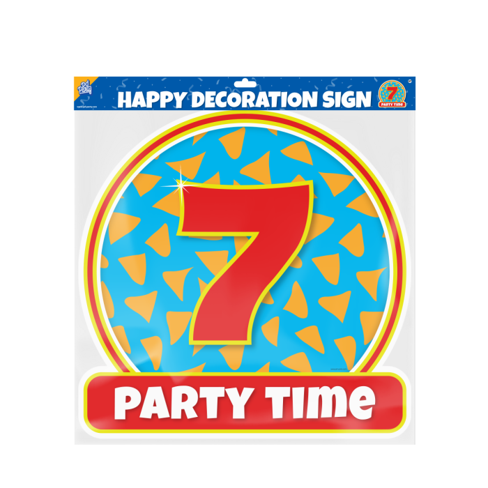 Vier de zevende verjaardag in stijl met dit vrolijke huldeschild van 50 cm. Het kleurrijke ontwerp met het cijfer 7 en de feestelijke tekst “Party Time” brengt direct een glimlach op ieders gezicht. Ideaal om op te hangen aan de muur, deur of het raam en zo de jarige extra in het zonnetje te zetten. Gemaakt van stevig papier en plastic voor een langdurig feestgevoel.