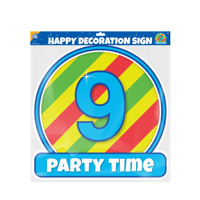 Vier de negende verjaardag met dit vrolijke huldeschild van 50 cm! De felle kleuren en het feestelijke ontwerp met het cijfer 9 maken van elke verjaardag een echte party. Perfect om op te hangen aan de muur, deur of het raam voor een opvallende verjaardagsdecoratie. Gemaakt van stevig papier en plastic voor langdurig plezier.
