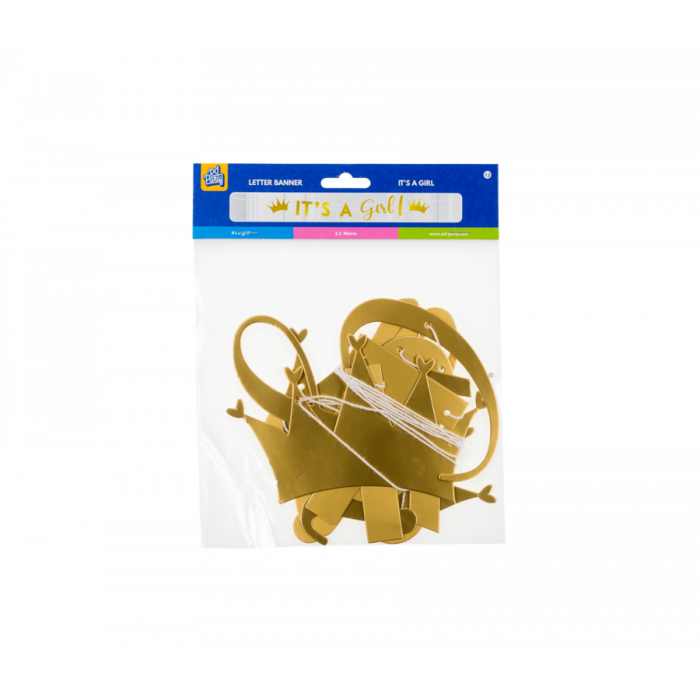 De Letter Slinger It’s a Boy is een feestelijke decoratie om de geboorte van een zoon te vieren. De slinger bestaat uit gouden letters met kroontjes en vormt de tekst “It’s a Boy”. Met een lengte van 250 cm is deze slinger ideaal om op te hangen aan de muur, deur of boven de feesttafel. Een stijlvolle en feestelijke versiering die perfect past bij een kraamfeest of babyborrel.