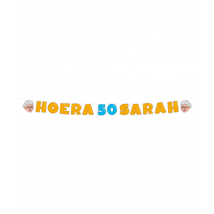 De Letter Slinger Sarah 50 Jaar is een feestelijke decoratie die niet mag ontbreken bij het vieren van een 50ste verjaardag. Deze vrolijke slinger met de tekst “Hoera 50 Sarah” en een kleurrijke Sarah-illustratie zorgt direct voor een feestelijke sfeer. Met een lengte van 3 meter is de slinger eenvoudig op te hangen aan de muur, deur of boven de feesttafel. Een perfecte decoratie om de jarige extra in het zonnetje te zetten en het feest compleet te maken.