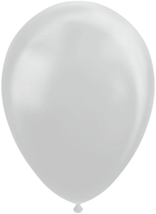50 Zilver metallic ballonnen van het merk Fiësta. Deze ballonnen zijn wanneer opgeblazen ongeveer 30 cm groot.