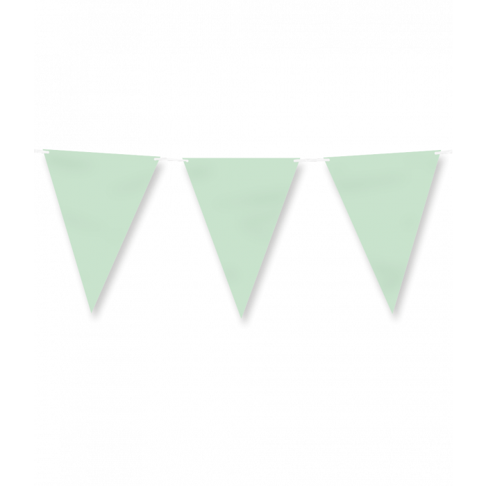 Breng een frisse en stijlvolle sfeer aan je feestdecoratie met deze papieren vlaggenlijn in pastel groen. De slinger heeft een lengte van 6 meter en bestaat uit 10 vlaggen, ideaal voor verjaardagen, babyshowers, bruiloften of tuinfeesten. De zachte pastelgroene kleur zorgt voor een rustgevende en moderne uitstraling en combineert prachtig met andere pastelkleuren. Dankzij het papieren materiaal heeft de vlaggenlijn een natuurlijke en elegante look die perfect past bij zowel intieme als grotere vieringen. Eenvoudig op te hangen en een tijdloze toevoeging aan ieder feest.