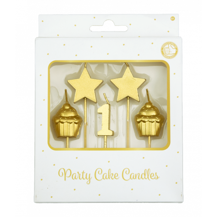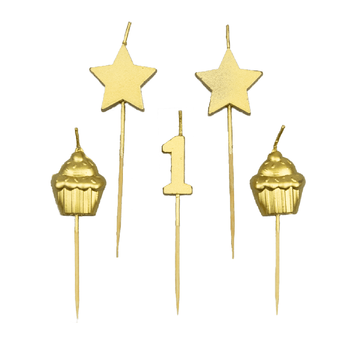De allereerste verjaardag is een mijlpaal — vier het met deze schitterende gouden party kaarsjes. De set bevat vijf kaarsen met het cijfer 1, twee sterren en twee cupcakes die elke taart omtoveren tot een feestelijke blikvanger. De gouden glans geeft een luxe uitstraling, terwijl de 10 cm hoge kaarsjes perfect opvallen tijdens het bijzondere moment. Een prachtige toevoeging aan de eerste verjaardagstaart.