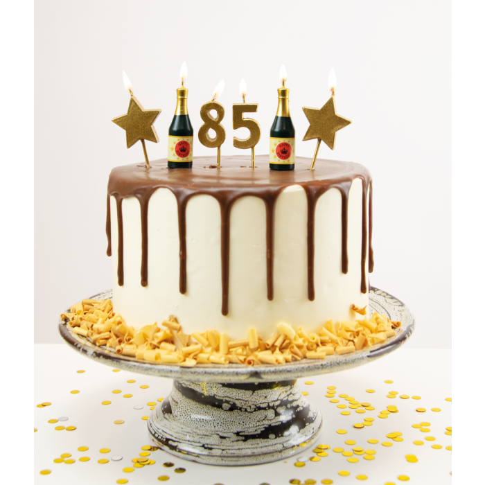 De set bestaat uit kaarsjes in de vorm van het cijfer 8 en 5, zodat je samen het getal 85 kunt vormen. Met hun vrolijke en feestelijke uitstraling maken ze elk verjaardagsmoment extra bijzonder.