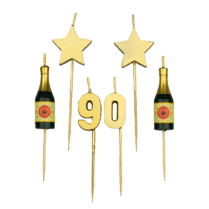 De set bestaat uit kaarsjes in de vorm van het cijfer 9 en 0, zodat samen het getal 90 gevormd wordt. Met hun feestelijke uitstraling zijn ze een onmisbare toevoeging aan elke verjaardag of jubileumviering.