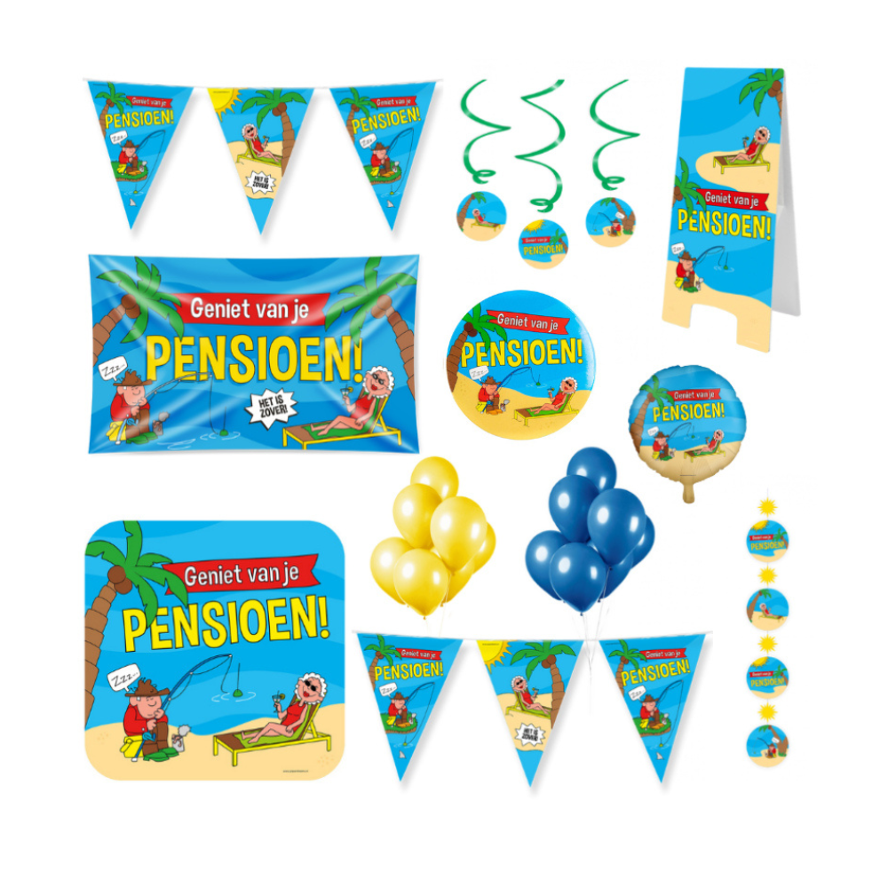 Bestel vandaag nog en geef het pensioenfeest kleur, karakter en een flinke dosis gezelligheid!