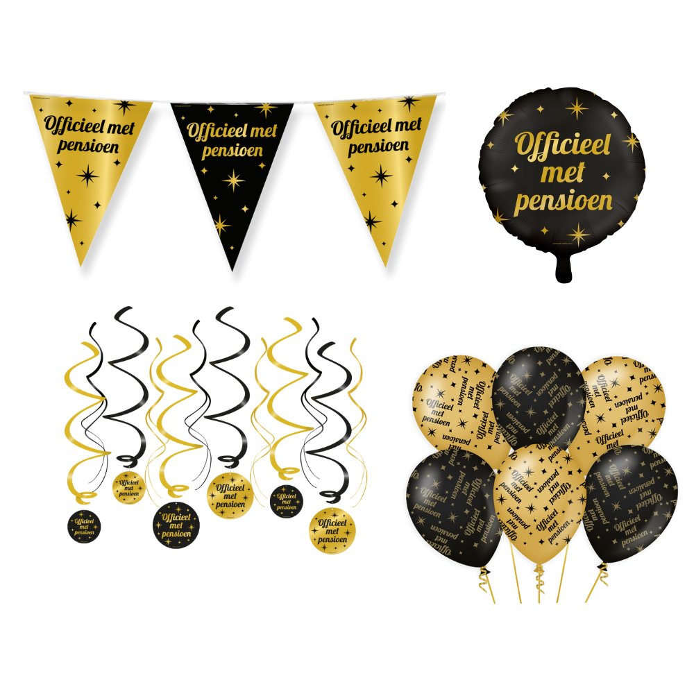 Pensioen Versiering Pakket – Zwart Goud Classy | Luxe Decoratieset voor een Stijlvol Pensioenfeest