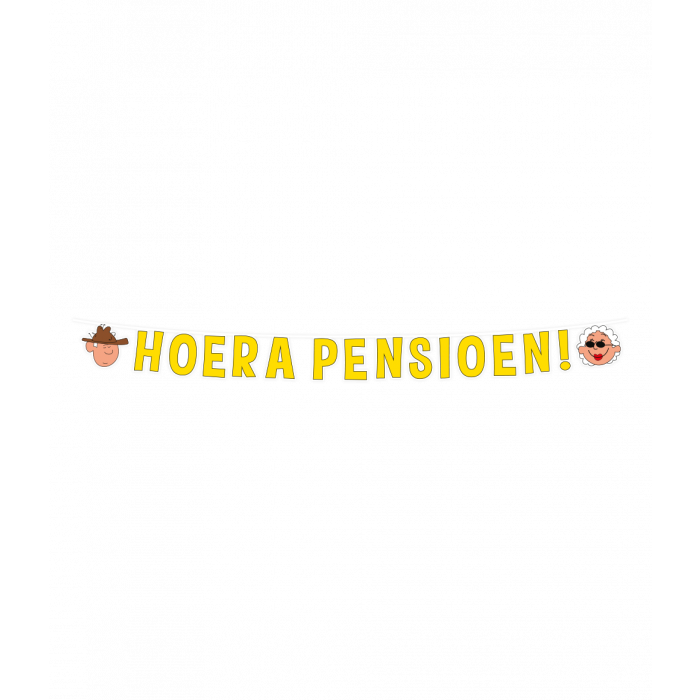 Deze slinger met als thema Pensioen is de ideale versiering op een feestje ter ere van iemand die met pensioen gaat. Door de gebruikte kleuren en het vrolijke design vallen deze slingers dan ook extra goed op! De slingers zijn gemaakt van papier, hebben een lengte van 2,5 meter.