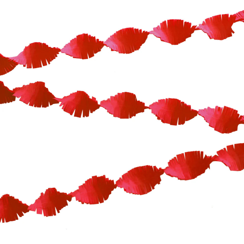 Vrolijke crepe papier slinger in feestelijke rode kleur. Met deze crepe papieren slinger maak je het meteen gezellig op je feestje.