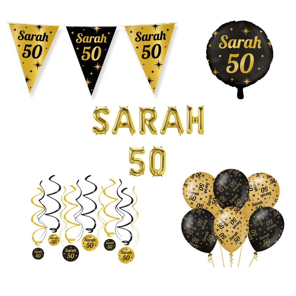 Wordt er binnenkort iemand 50? Vier deze mijlpaal in stijl met ons Sarah Versiering Pakket! Met deze complete decoratieset zorg je voor een onvergetelijk feest en laat je de jarige en alle gasten direct in de feeststemming komen.