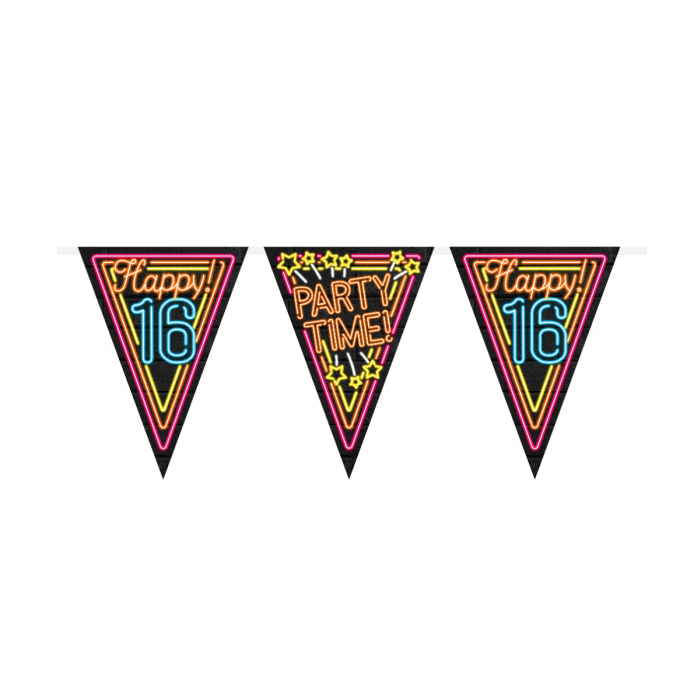 Aantal: 1 stuks Afmeting: ca. 10 meter x 30 cm Kleur: Zwart met multi kleuren Materiaal: Plastic De slinger 16 jaar Neon is gemaakt van plastic en heeft een lengte van ca. 10 meter. De Neon gekleurde slinger met het cijfer 16 wordt per stuk geleverd.