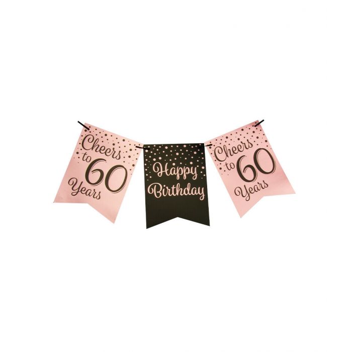 Vier een 60e verjaardag in stijl met deze elegante Slinger 60 Jaar in rosé en zwart. Met een lengte van 6 meter is deze slinger ideaal om een woonkamer, feestzaal of tuin een chique en feestelijke uitstraling te geven. Het design met het cijfer 60 maakt hem de perfecte decoratie voor een verjaardag of jubileum.