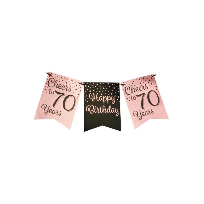 Of je nu een intiem feestje thuis viert of een groot jubileum organiseert, met deze Slinger 70 Jaar Rosé/Zwart van 6 meter creëer je direct een stijlvolle en feestelijke sfeer. Combineer met ballonnen, folieballonnen en tafelversiering voor een compleet themafeest.