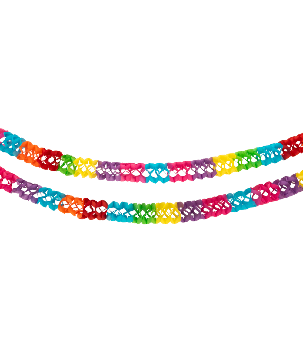 Versier de stoel van de jarige met deze slingers! Kleurige stoelslingers om de jarige in het zonnetje te zetten. De stoelversiering bestaat uit 2 slingers van 2,5 meter per stuk.