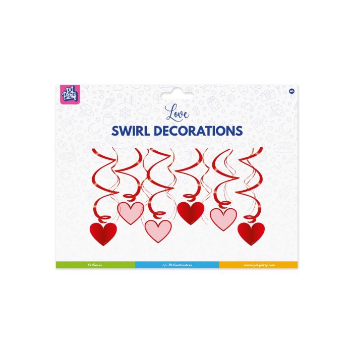 De Swirl Decoraties Love zijn de ideale versiering om een romantische sfeer te creëren tijdens een bruiloft, jubileum of Valentijnsdag. Deze set bevat 12 rode hangdecoraties van circa 70 cm lang, met hartvormige hangers in rood en roze. De swirls zijn eenvoudig te bevestigen aan het plafond en zorgen direct voor een liefdevolle en feestelijke uitstraling. Perfect om een diner, feestzaal of woonkamer in romantische sferen te brengen en het moment extra bijzonder te maken.