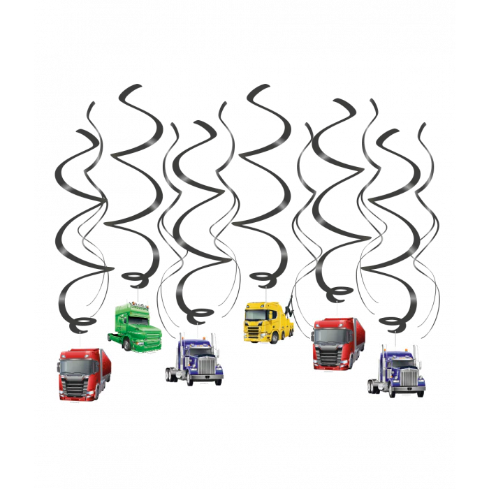 Een kinderfeestje is altijd speciaal en wat is er nou leuker dan om dit feestje leuk aan te kleden met de swirl decoratie Trucks! De swirls zijn gemaakt van plastic en papier en zijn ongeveer 70 centimeter lang.
