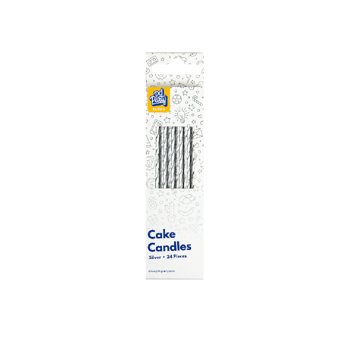 Geef je taart of gebak een sprankelende en elegante uitstraling met deze set van 24 zilveren taartkaarsjes. De stijlvolle zilveren kleur zorgt voor een luxe en feestelijke touch, waardoor ze perfect passen bij verjaardagen, bruiloften, jubilea, feestdagen of andere bijzondere gelegenheden.