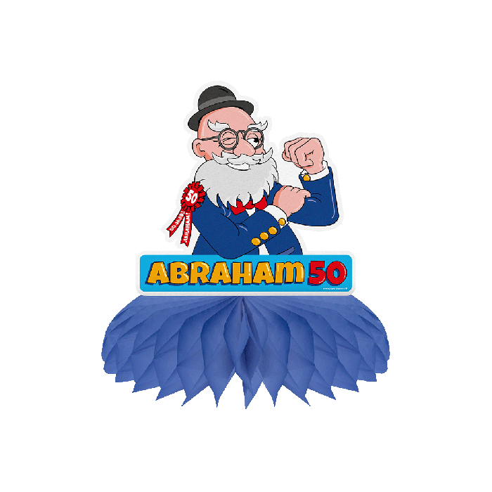 Maak de verjaardagstafel extra feestelijk met deze vrolijke Abraham 50 tafel decoratie. De stevige kartonnen standaard toont een grappige Abraham-figuur met de tekst ‘Abraham 50’ en heeft een blauwe honingraatvoet die zorgt voor een speels en feestelijk effect. Met een formaat van ongeveer 20 bij 16,5 centimeter is deze tafelstand perfect als blikvanger op de feesttafel of bij het cadeautafeltje. Gemaakt van papier, eenvoudig uit te vouwen en herbruikbaar bij meerdere feesten. Ideaal voor elke man die zijn 50e verjaardag viert in stijl!