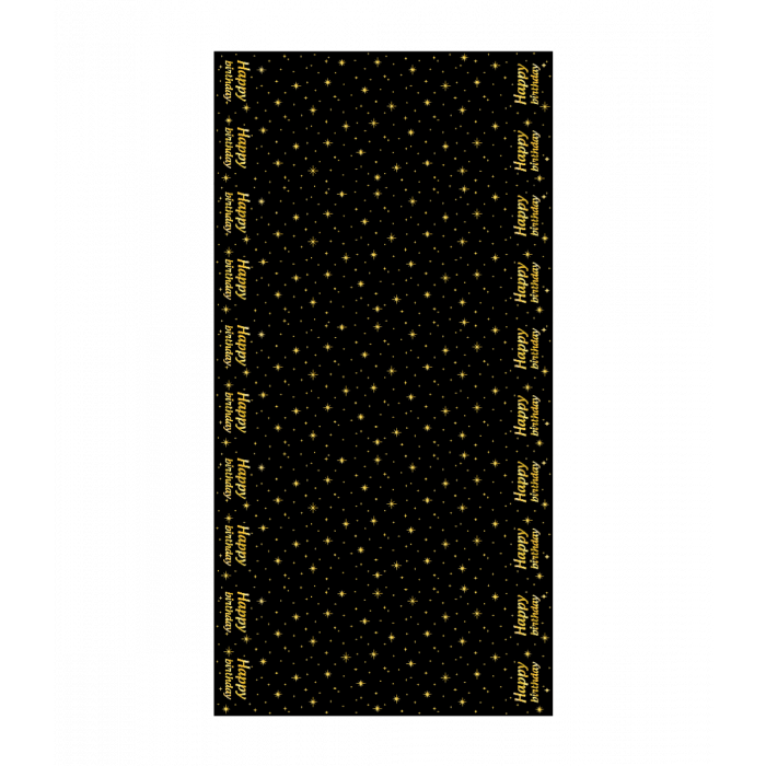 Geef je feesttafel een chique en feestelijke uitstraling met dit zwarte Happy Birthday tafelkleed met gouden sterren. Het tafelkleed is bedrukt met een sprankelend sterrenpatroon en de tekst ‘Happy Birthday’ langs de randen, waardoor het perfect past bij een stijlvolle verjaardag of elegant feestthema. Met zijn royale afmeting van 137 bij 214 centimeter bedekt het moeiteloos een standaard eettafel en beschermt het tegen vlekken en kruimels. Het tafelkleed is gemaakt van stevig materiaal en combineert luxe uitstraling met praktisch gebruiksgemak — ideaal voor een verjaardagsdiner, feestje of borrel in stijl.