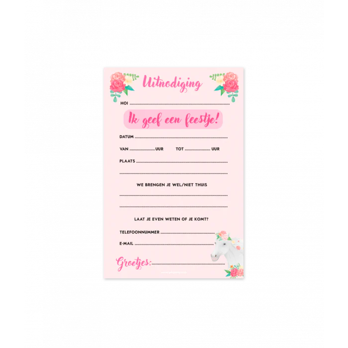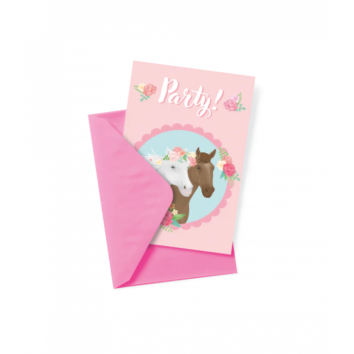 Iemand uitnodigen voor een kinderfeestje kan perfect met de leuke 'Paard' uitnodigingskaarten! Uitnodigingskaarten Paard 6 Stuks Inclusief Envelop